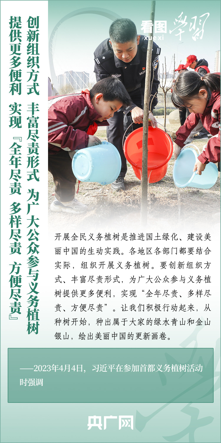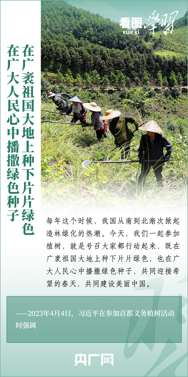 今年3月12日是我國第46個(gè)植樹節(jié)。黨的十八大以來,每年春天,習(xí)近平總書記都會(huì)同首都各界參加義務(wù)植樹活動(dòng),一起揮鍬鏟土,細(xì)心澆灌樹苗。總書記強(qiáng)調(diào),開展全民義務(wù)植樹是推進(jìn)國土綠化、建設(shè)美麗中國的生動(dòng)實(shí)踐。一起來學(xué)習(xí)!