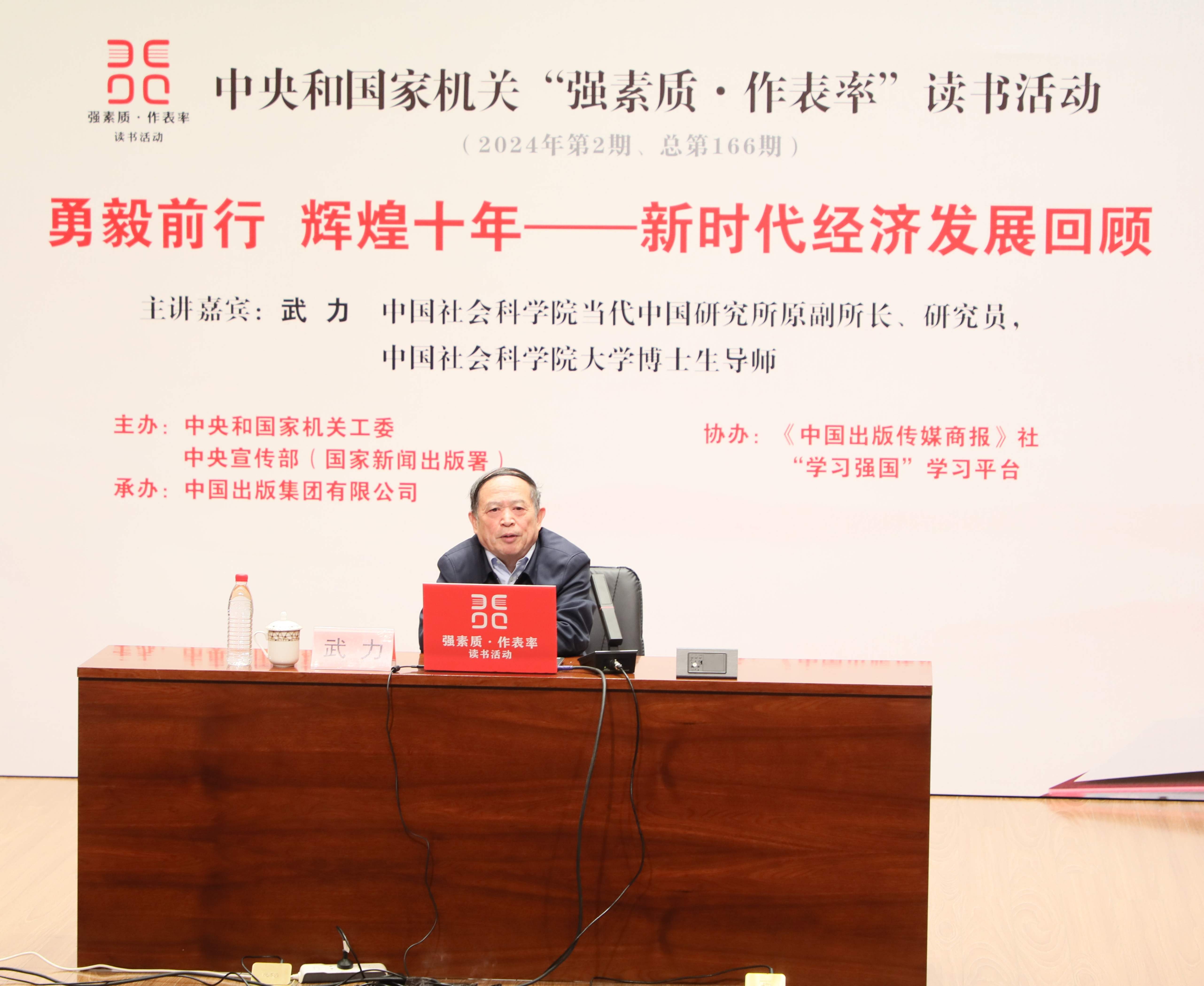 3月23日,中央和國家機關“強素質·作表率”讀書活動2024年第2期主題講座在京舉辦。中國社會科學院當代中國研究所原副所長、研究員,中國社會科學院大學博士生導師武力以《勇毅前行 輝煌十年——新時代經濟發展回顧》為題作講座。中央和國家機關各部門黨員干部300余人參加活動。