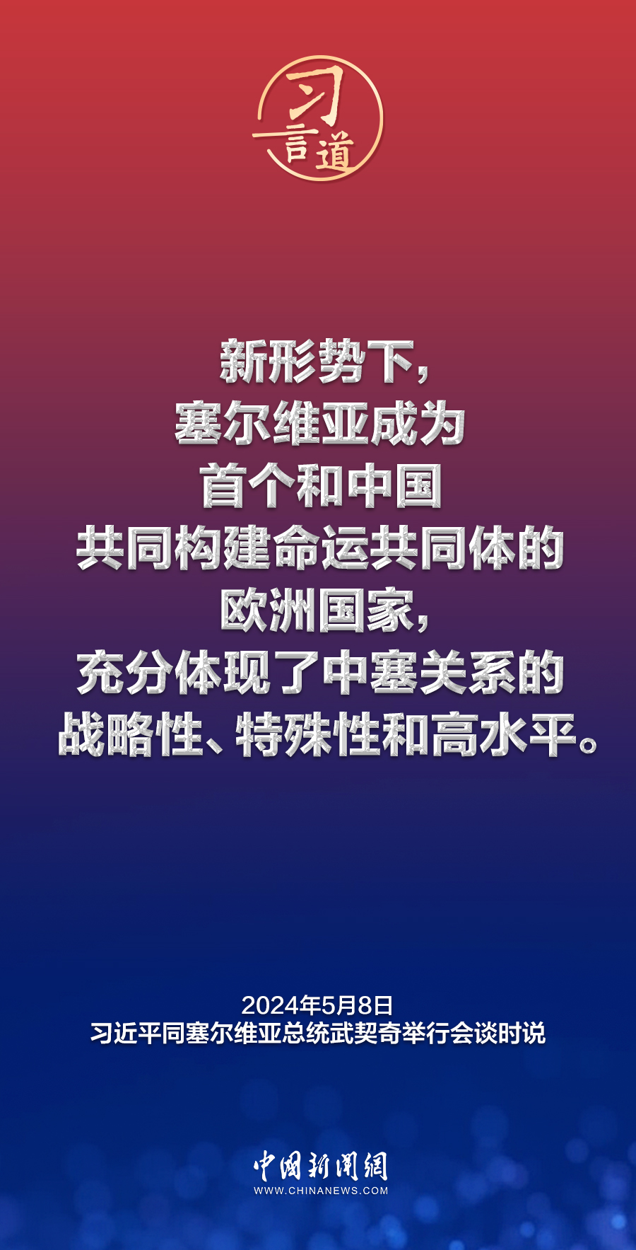 當?shù)貢r間5月8日上午,國家主席習近平在貝爾格萊德塞爾維亞大廈同塞爾維亞總統(tǒng)武契奇舉行會談。習近平指出——
