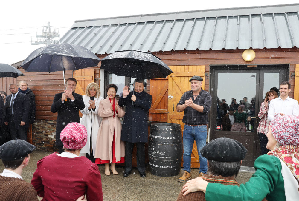 鐵制的牛鈴、風干的火腿、斑駁的獸皮毯、歡快的牧羊人之舞……南法山區的古樸民風撲面而來。屋外銀裝素裹,屋內暖意融融。兩國元首憑窗而坐,遠眺山景氣象萬千,縱論世事風云變幻,暢敘文明和美之道。從尼斯夜談到豫園茶敘,從松園會晤到雪山對話,中法元首外交再續佳話。