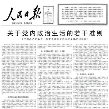 >> 黨的十一屆五中全會通過的《關于黨內政治生活的若干準則》。