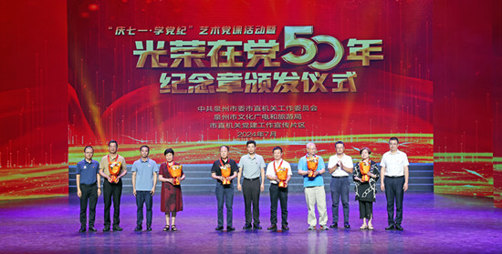 日前,泉州市直機關工委、泉州市文化廣電和旅游局等單位聯合舉辦“慶七一·學黨紀”藝術黨課活動暨“光榮在黨50年”紀念章頒發儀式。