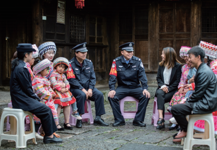 >> 云南昭通公安民警在夏季治安打擊整治“百日行動”期間向苗族同胞宣講法律法規。