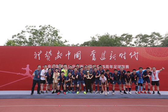 7月23日,“禮贊新中國 奮進新時代”中央和國家機關慶祝新中國成立75周年足球聯賽圓滿結束并在國家奧林匹克體育中心足球場舉行頒獎儀式。中央和國家機關工委分管日常工作的副書記郭文奇,中央和國家機關工委副書記、中央和國家機關工會聯合會主席蔡淑敏,中央和國家機關工委委員、組織部部長閃偉強出席頒獎儀式并為獲獎隊伍頒獎。