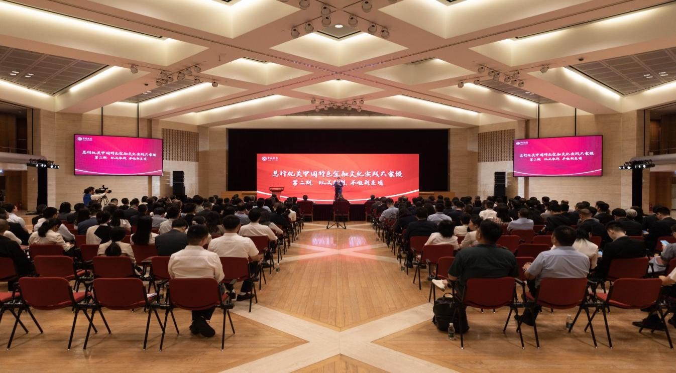 近日,中國銀行總行機關舉辦第二期“中國特色金融文化實踐大家談”系列活動(“以義取利”篇)。黨委班子和管理層成員出席,總行機關各黨支部書記、宣傳委員、黨員代表共200余人現場參加。