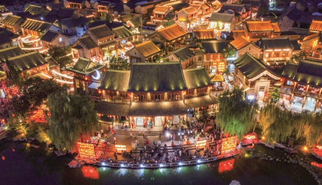 >> 入夏以來,河南省洛陽市圍繞暑期文旅市場特點及游客需求,進一步挖掘夜間文化旅游消費市場潛力,持續激發夜間文旅消費新活力,點燃古都“夜經濟”。圖為2024年7月27日晚,游客在河南省洛陽市老城區歷史文化街區洛邑古城景區內休閑游覽。