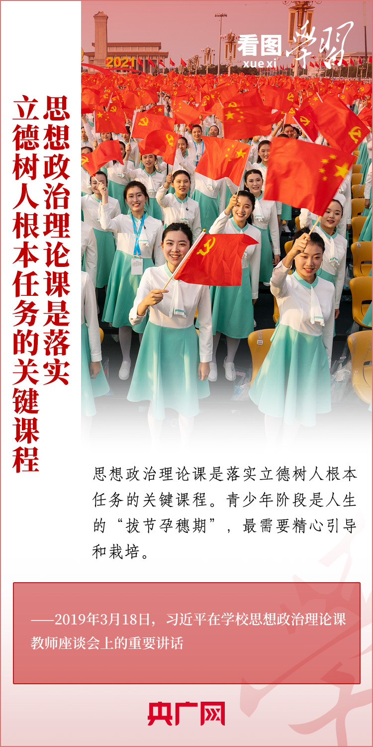 思想政治理論課是落實立德樹人根本任務的關鍵課程,事關“培養什么人、怎樣培養人、為誰培養人”的根本性問題。辦好思政課,是習近平總書記非常關心的一件事??倳洀娬{,要“不斷加強和改進新時代學校思想政治教育,教育引導青少年學生堅定馬克思主義信仰、中國特色社會主義信念、中華民族偉大復興信心,立報國強國大志向、做挺膺擔當奮斗者?!币黄饋韺W習!