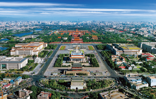 新中國成立后,天安門廣場及建筑群居中布置國家紀念性建筑,東側中國國家博物館、西側人民大會堂分別對應太廟、社稷壇,堅持了中華文明“中”“和”理念,延續了“左祖右社”的文化傳統,表達了中國長期以來對人和現實社會的尊重,為北京中軸線突出價值的時代完整性提供了重要支撐。