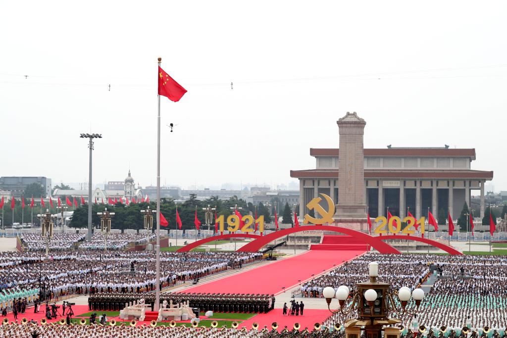 2021年7月1日上午,慶祝中國共產(chǎn)黨成立100周年大會(huì)在北京天安門廣場(chǎng)隆重舉行。 新華社記者 蘭紅光 攝