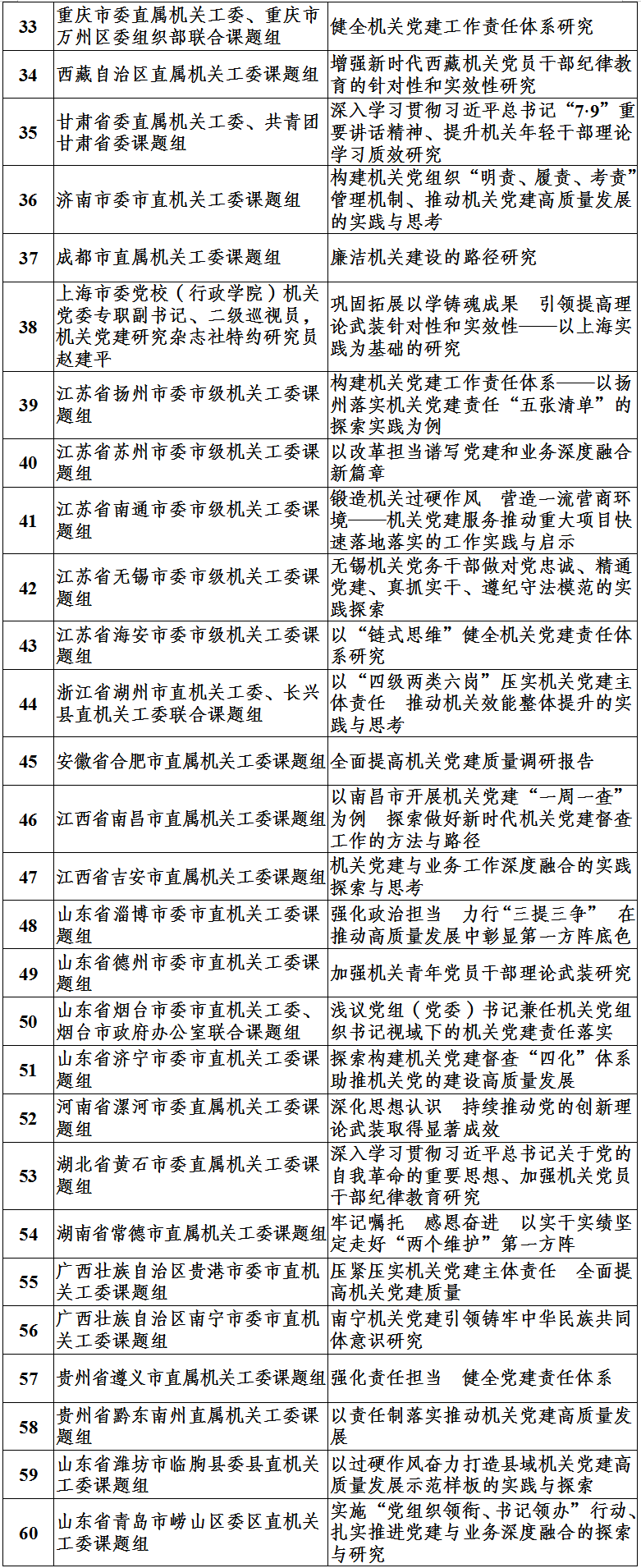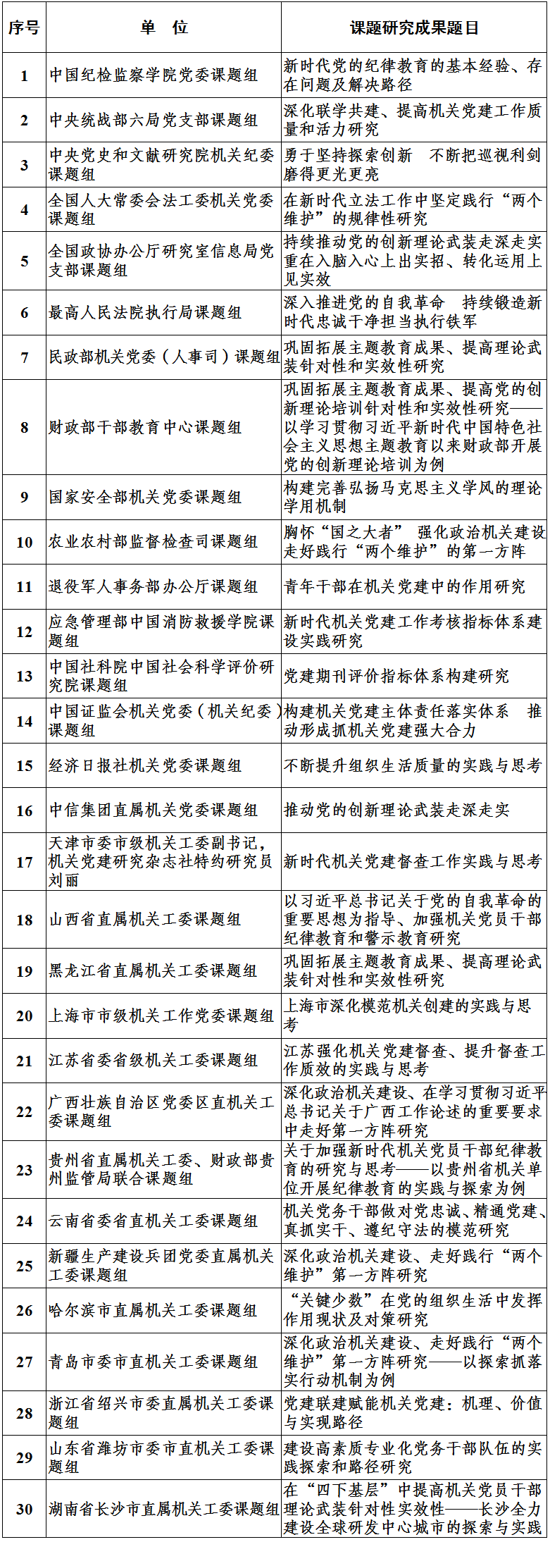 為深入學(xué)習(xí)貫徹習(xí)近平新時(shí)代中國特色社會(huì)主義思想和黨的二十大精神,認(rèn)真貫徹落實(shí)黨的二十屆三中全會(huì)精神,貫徹落實(shí)習(xí)近平總書記關(guān)于黨的建設(shè)的重要思想、關(guān)于黨的自我革命的重要思想,特別是關(guān)于機(jī)關(guān)黨建的重要講話和重要指示精神,扎實(shí)推進(jìn)機(jī)關(guān)黨建理論研究工作,助力全面提高機(jī)關(guān)黨建質(zhì)量,中央和國家機(jī)關(guān)工委機(jī)關(guān)黨建研究雜志社組織開展了2024年度課題研究工作。今年,共收到中央和國家機(jī)關(guān)各部門、地方各級(jí)機(jī)關(guān)黨組織、機(jī)關(guān)黨建研究雜志社特約研究員報(bào)送的課題研究成果347篇。按照公平公正原則進(jìn)行了初評(píng)和復(fù)評(píng),經(jīng)中央和國家機(jī)關(guān)工委審定,評(píng)選出一等獎(jiǎng)10篇、二等獎(jiǎng)20篇、三等獎(jiǎng)30篇、優(yōu)秀獎(jiǎng)60篇,優(yōu)秀組織獎(jiǎng)10個(gè)。