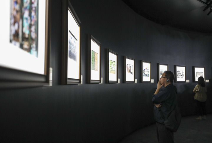 2024年9月26日,觀眾在北京參觀“國社之鏡·世紀光影”新華社新聞攝影展。新華社記者 杜瀟逸 攝
