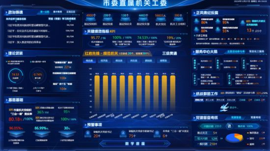 緊扣數字重慶建設“1361”總體框架,研發上線“紅巖先鋒·模范機關”應用,順利貫通104個市級部門和38個區縣,實現全市機關基層黨組織和黨員干部線上全覆蓋。應用聚焦全面提高機關黨建“統”的能力,謀劃建設數字駕駛艙、數字底座、“一表通”和若干“一件事”,著力形成機關黨建核心業務駕駛艙“一屏統覽”、日常履職數字化“一表統盡”、選育樹推全流程“一體統籌”、部署落實鏈條式“一環統管”、考核評價立體化“一網統計”和機關黨建全流程展示、全方位評價、全過程智管、全周期服務等整體智治能力,得到中央和國家機關工委充分肯定。