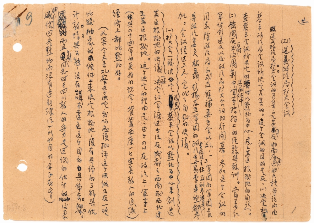 《(乙)遵義政治局擴大會議》手稿