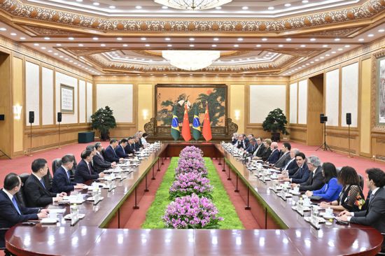 習(xí)近平強(qiáng)調(diào),站在新的歷史起點(diǎn),中巴雙方一要堅(jiān)持戰(zhàn)略互信,夯實(shí)中巴命運(yùn)共同體根基,秉持相互尊重、互利共贏的優(yōu)良傳統(tǒng),在涉及對(duì)方核心利益和重大關(guān)切問(wèn)題上相互支持,加強(qiáng)各層級(jí)、全方位往來(lái),確保雙邊關(guān)系長(zhǎng)期健康穩(wěn)定發(fā)展。二要堅(jiān)持?jǐn)U大合作,豐富中巴命運(yùn)共同體內(nèi)涵,深化“一帶一路”倡議同巴西發(fā)展戰(zhàn)略有效對(duì)接,發(fā)揮好兩國(guó)各項(xiàng)合作機(jī)制作用,加強(qiáng)基礎(chǔ)設(shè)施、農(nóng)業(yè)、能源等傳統(tǒng)領(lǐng)域合作,拓展能源轉(zhuǎn)型、航空航天、數(shù)字經(jīng)濟(jì)、人工智能等合作新疆域,為兩國(guó)務(wù)實(shí)合作打造更多亮點(diǎn)。三要堅(jiān)持人文交流,增加中巴命運(yùn)共同體活力,以明年舉辦“中巴文化年”為契機(jī),加強(qiáng)文化、教育、旅游、媒體、地方等合作,為雙方人員往來(lái)提供更多便利。四要堅(jiān)持多邊協(xié)作,提升中巴命運(yùn)共同體成色。作為東西半球兩大發(fā)展中國(guó)家,兩國(guó)要加強(qiáng)在聯(lián)合國(guó)、金磚國(guó)家、中拉論壇等多邊機(jī)制中的協(xié)調(diào)配合,共同堅(jiān)持多邊主義、完善全球治理、維護(hù)國(guó)際經(jīng)貿(mào)秩序,旗幟鮮明反對(duì)單邊主義、保護(hù)主義和霸凌行徑。
