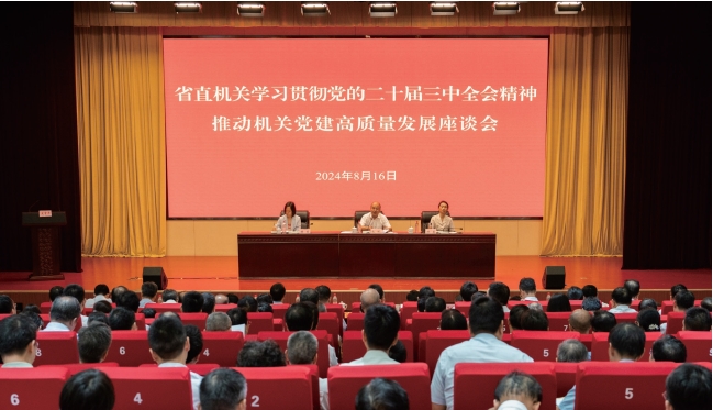 2024年8月16日,安徽省直機關學習貫徹黨的二十屆三中全會精神推動機關黨建高質量發展座談會召開。