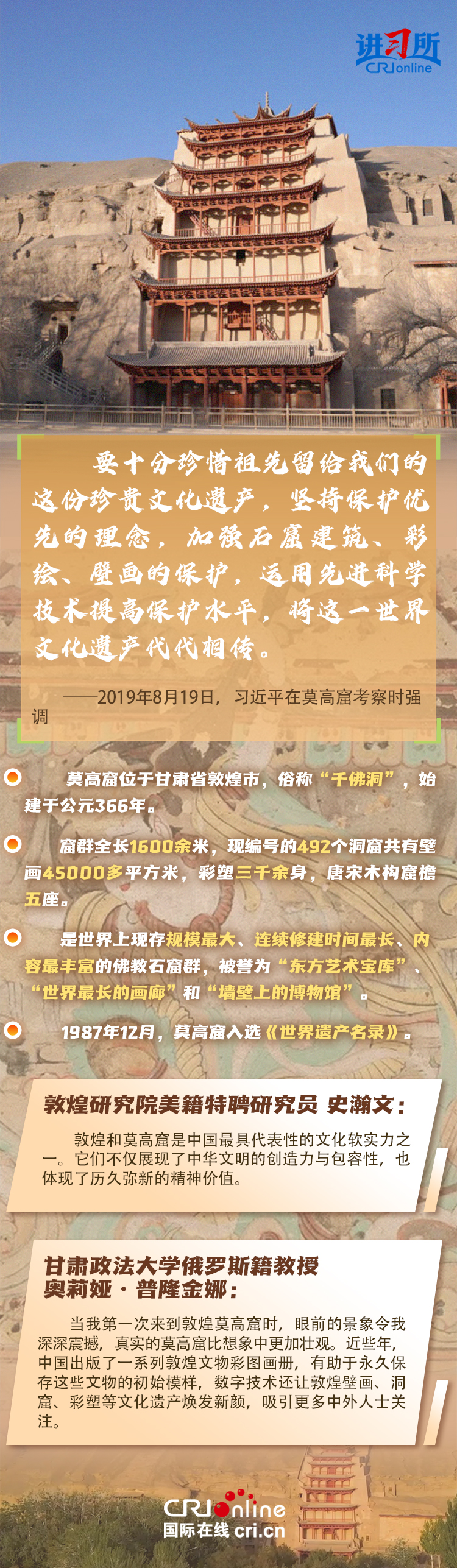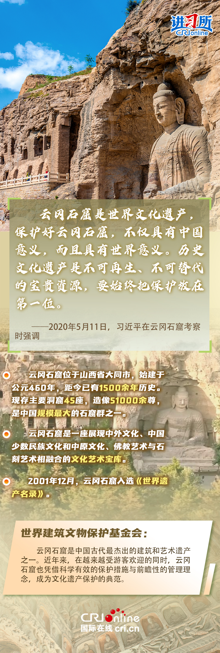 龍門石窟被聯合國教科文組織評價為“中國石刻藝術的最高峰”,與敦煌莫高窟、云岡石窟、麥積山石窟并稱為“中國四大石窟”,具有重要歷史價值、文化價值。近年來,習近平先后考察了中國四大石窟。對這些承載著中華民族文化基因和血脈的文物和文化遺產,習近平強調,“保護好、傳承好歷史文化遺產是對歷史負責、對人民負責。”