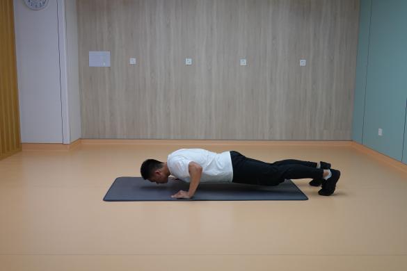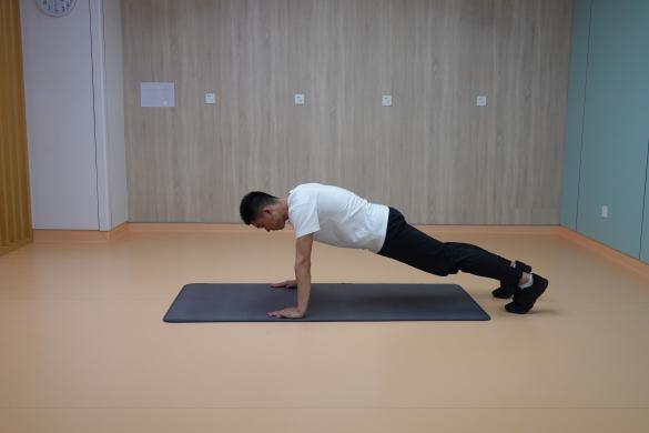 1、俯臥撐:雙手及腳尖支撐進行俯臥撐,保持肩、髖、踝關節在一條直線上,一組進行10-15次,重復2-4組,組間休息60秒。