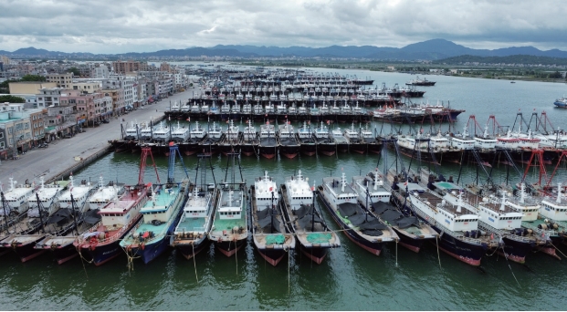 2024年5月31日14時,第2號臺風“馬力斯”影響廣東省茂名市,氣象部門及時發布預警信息后,漁船回港避風。