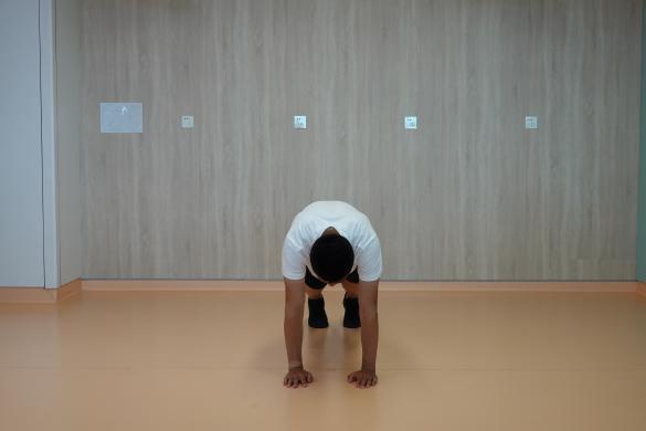 1、俯身觸踝:俯臥撐姿,雙手與雙足尖支撐身體,一側(cè)手抬起觸碰對側(cè)踝關(guān)節(jié),左右交替為一次,一組進行10-12次,重復2-3組,組間休息60秒。