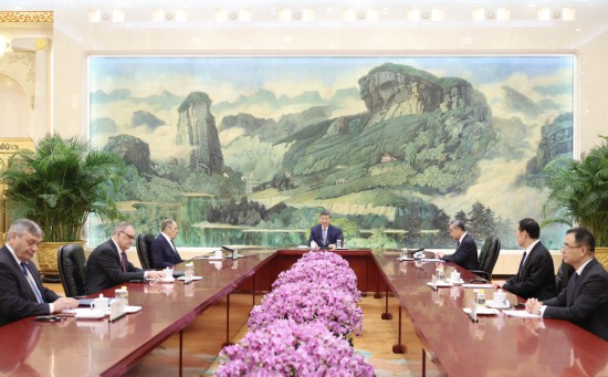 7月15日上午,國家主席習近平在北京人民大會堂會見俄羅斯外長拉夫羅夫。新華社發