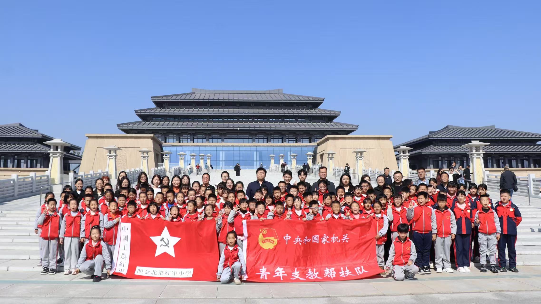 三是用好紅色資源,深刻感悟紅色沃土上的精神偉力。各支教幫扶隊充分利用革命老區豐富的紅色遺址遺跡和革命英烈事跡,結合工作實際開展主題黨日,在“沉浸式”學習中追憶先輩初心、傳承紅色基因、錘煉堅強黨性。西柏坡、北冶支教幫扶隊先后赴西柏坡中共中央舊址、西柏坡紀念館、沕沕水水電站等地開展聯合主題黨日,深入領會從“兩個務必”到“三個務必”的深刻內涵,進一步砥礪隊員扎根基層、實干擔當的初心使命。陽原支教幫扶隊通過梳理歷史文獻、考證史實細節,深入了解革命先輩在朝陽堡戰斗中不畏犧牲、英勇抗爭的歷程,深刻體會共產黨人對理想信念的執著追求和為人民利益甘于奉獻的擔當精神。照金支教幫扶隊制定學期學習計劃,在每周例行的理論學習中校準思想航線、錘煉政治品格,同時把課堂搬到革命舊址,在身臨其境中接受思想洗禮。呼家川支教幫扶隊依托延安445處革命舊址這一“活的史書”開展12次專題學習,聯合山東沂蒙老區開展“紅色心連心”云端德育課,共同學習延安精神、沂蒙精神與孔繁森精神,讓跨越山河的精神共振在云端激蕩。