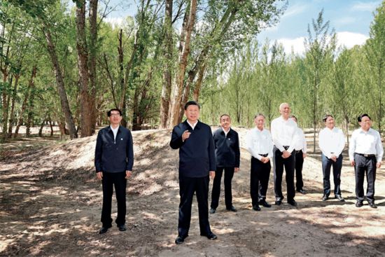 2023年6月5日至6日,中共中央總書記、國家主席、中央軍委主席習近平在內蒙古巴彥淖爾考察,并主持召開加強荒漠化綜合防治和推進“三北”等重點生態工程建設座談會。這是6日上午,習近平在臨河區國營新華林場考察。 新華社記者 謝環馳/攝