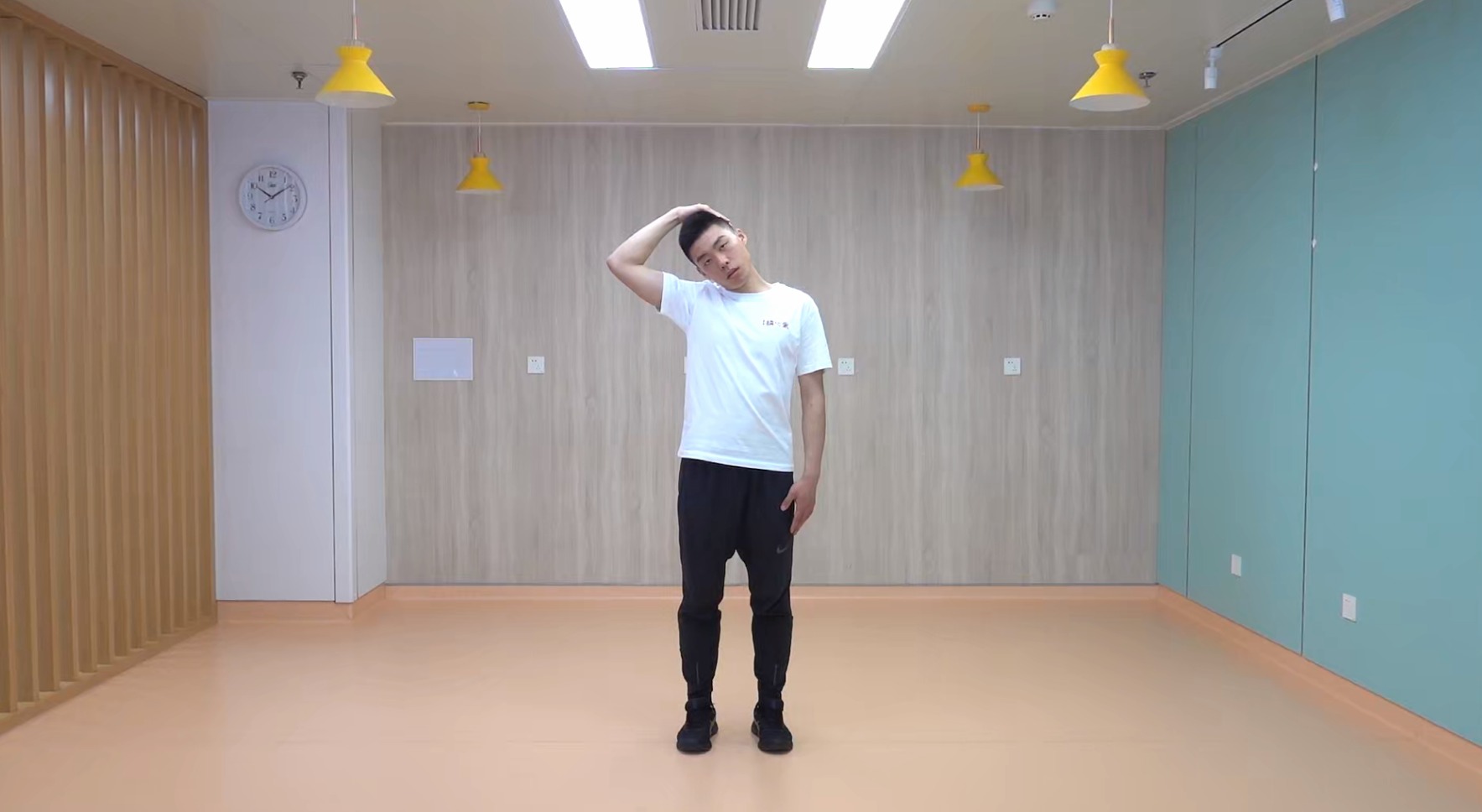 橫向屈頸:站立位,一手扶對(duì)側(cè)耳尖,橫向屈頸,保持3-5秒,交換對(duì)側(cè),單側(cè)進(jìn)行3-5次為1組,重復(fù)2-3組,組間休息60秒。