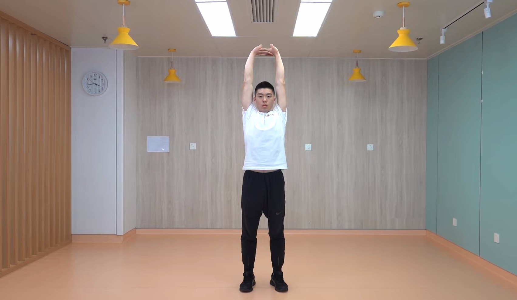 手臂高舉拉伸背闊肌:站姿,雙臂高舉過頭頂,并向上延伸,保持腰背挺直,保持3-5秒,進(jìn)行3-5次為1組,重復(fù)2-3組,組間休息60秒。