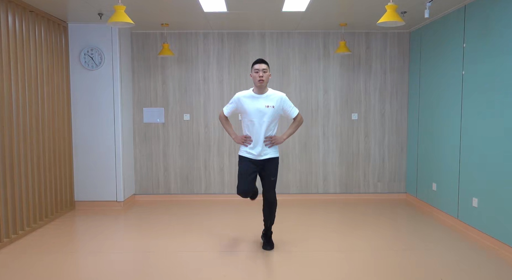 踢臀跑:腰背挺直,雙腳打開與肩同寬,雙臂在身體兩側(cè),做下肢踢臀跑,手臂隨跑動(dòng)擺動(dòng),腳盡量靠近臀部。10-12次為一組,做2-3組。