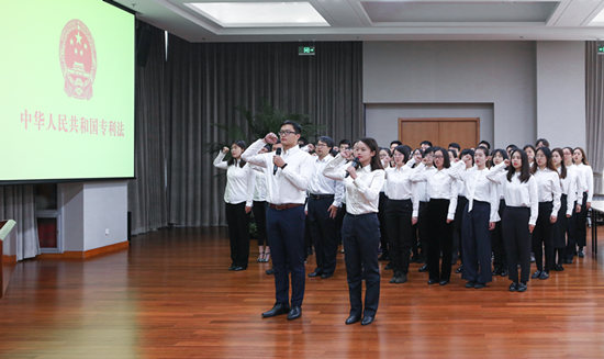 中心組織審查獨立上崗宣誓,圖為外觀設計專利第19期新審查員宣誓現場。