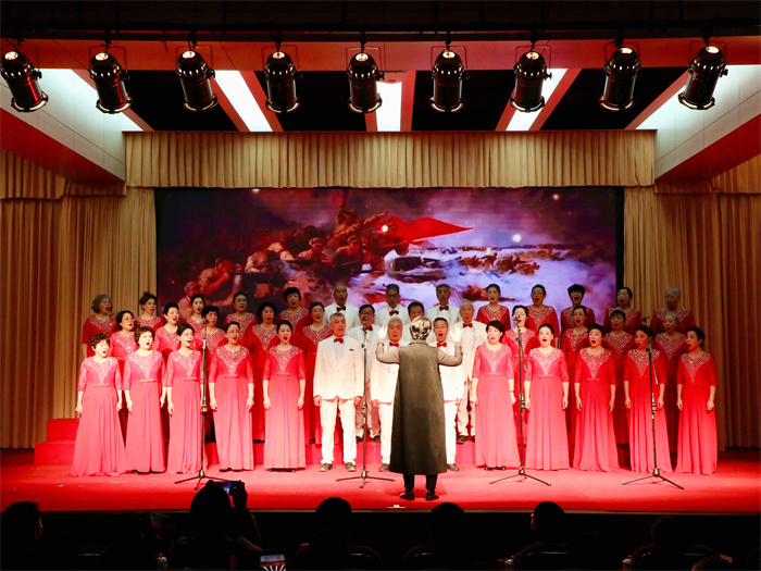 文藝展演以“銀齡綻放 藝彩生輝”為主題,13個節目精彩紛呈,涵蓋京劇、民樂、舞蹈、瑜伽、朗誦、合唱等多元藝術形式。原創詩朗誦《這里有我也有你》情真意切,娓娓道出同窗相攜共進的求學時光。藏族舞蹈《再唱山歌給黨聽》贊美了民族團結之花常開長盛。混聲合唱《保衛黃河》、《不忘初心》將氣氛推向高潮,唱出老同志們拳拳的家國情懷和對黨的無限忠誠。