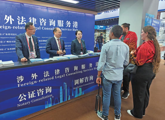 2025年4月15日,中國律師在中國進出口商品交易會(廣交會)涉外法律咨詢服務(wù)港為客商答疑解惑。